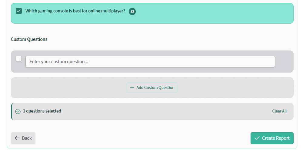 You can also enter your own custom questions by clicking on the “+ Add Custom Question” box.