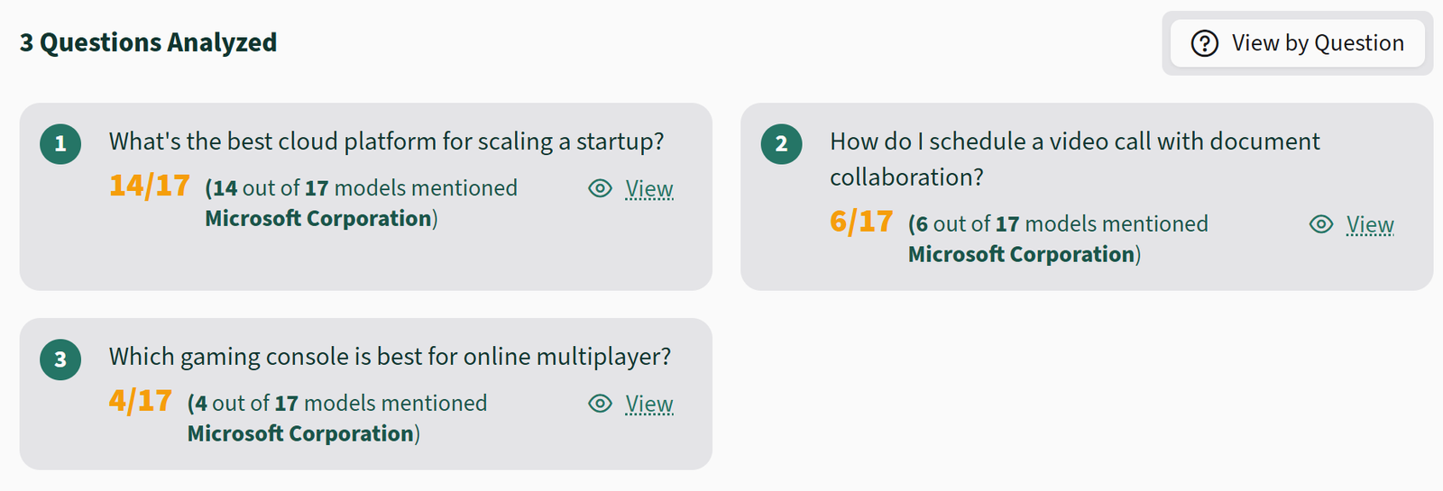 The third section is the Competitive comparison. It is a chart that shows your entity (top row) and competitors across all questions: