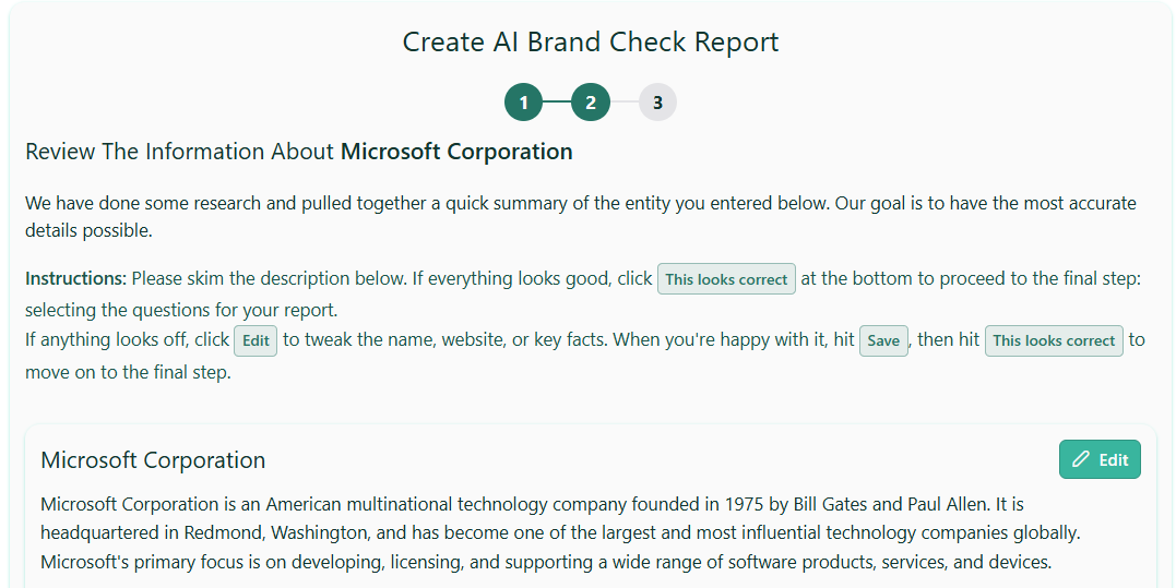 Review and edit the summary so it’s accurate this is the reference we’ll use to evaluate how correctly each model “knows” your entity. Save your changes.