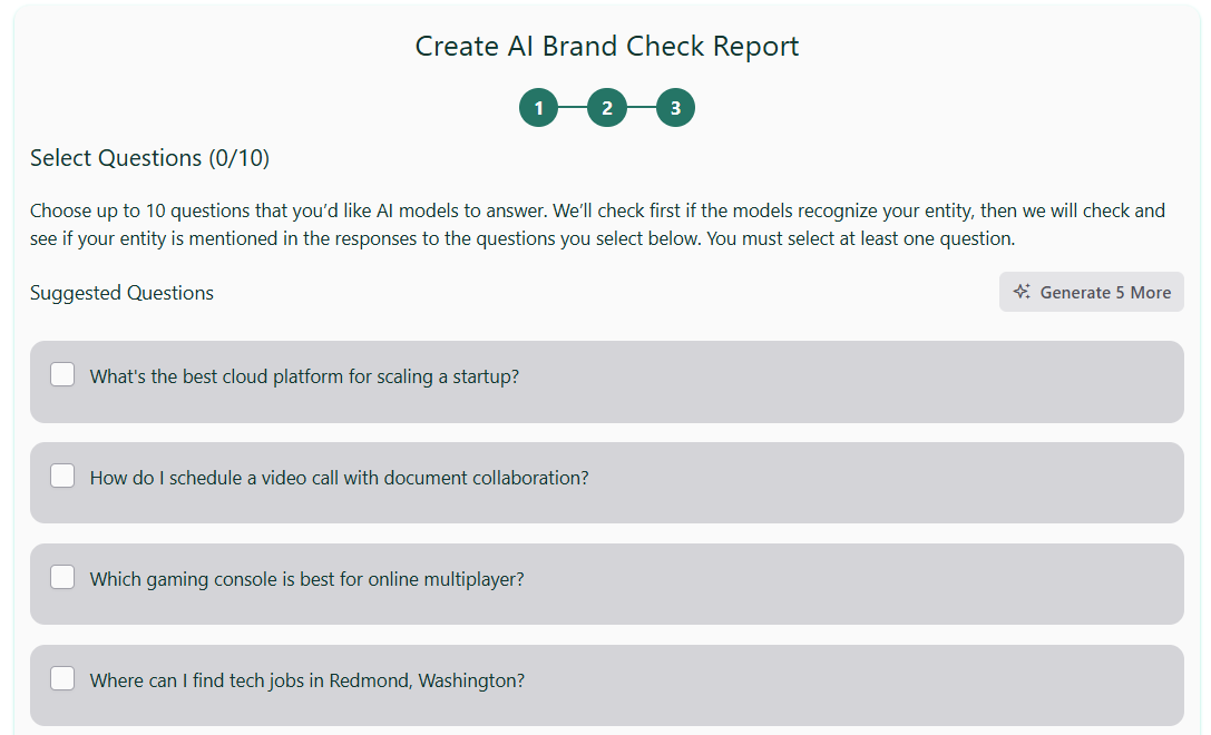 - Whether each model’s core knowledge includes your entity (Yes/No)